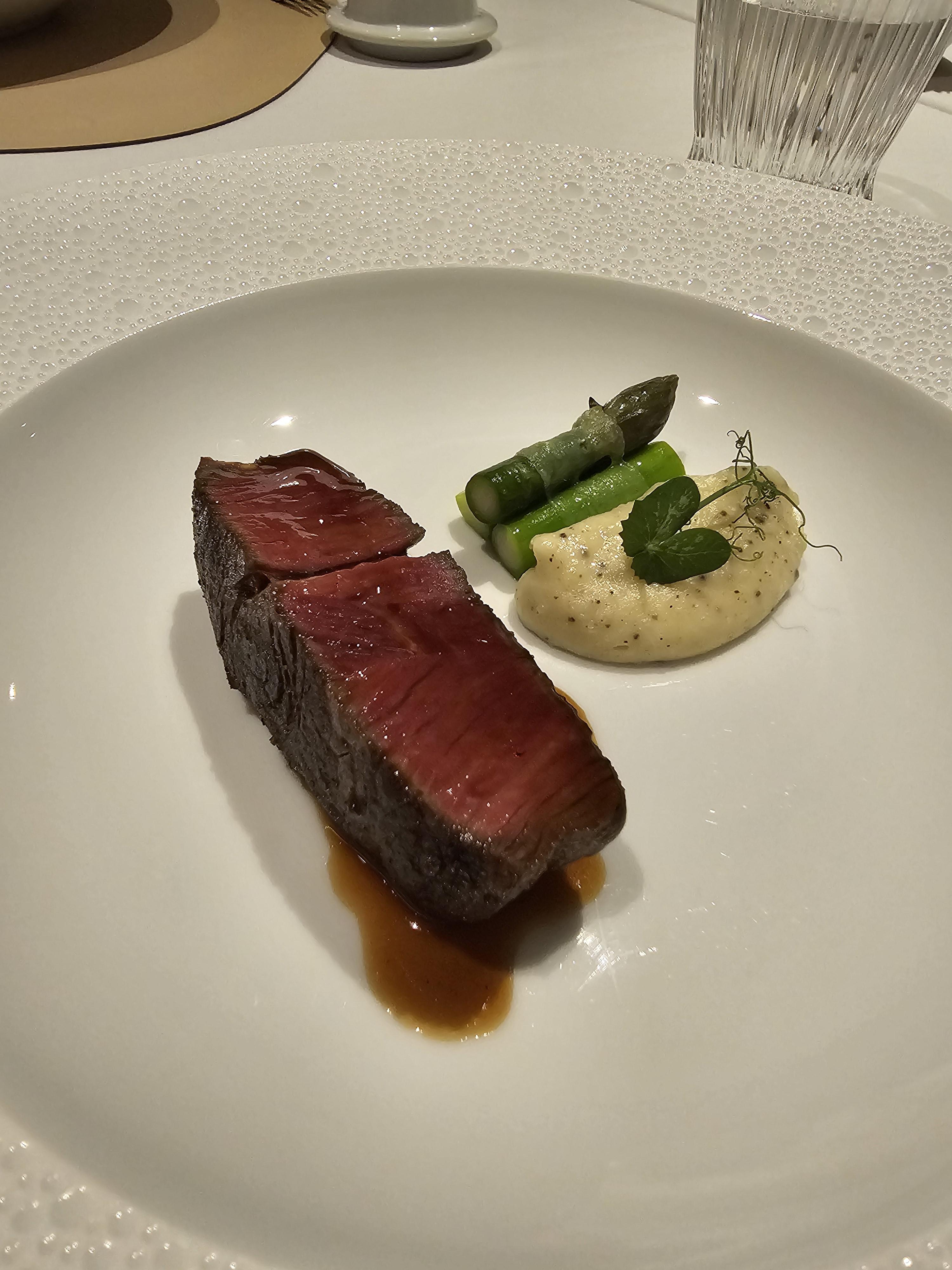 한우 안심은 기대 이상으로 부드러웠습니다. 비록 예상보다 크기가 작았지만, 코스를 마칠 무렵에는 충분히 만족스러운 식사를 즐길 수 있었습니다.