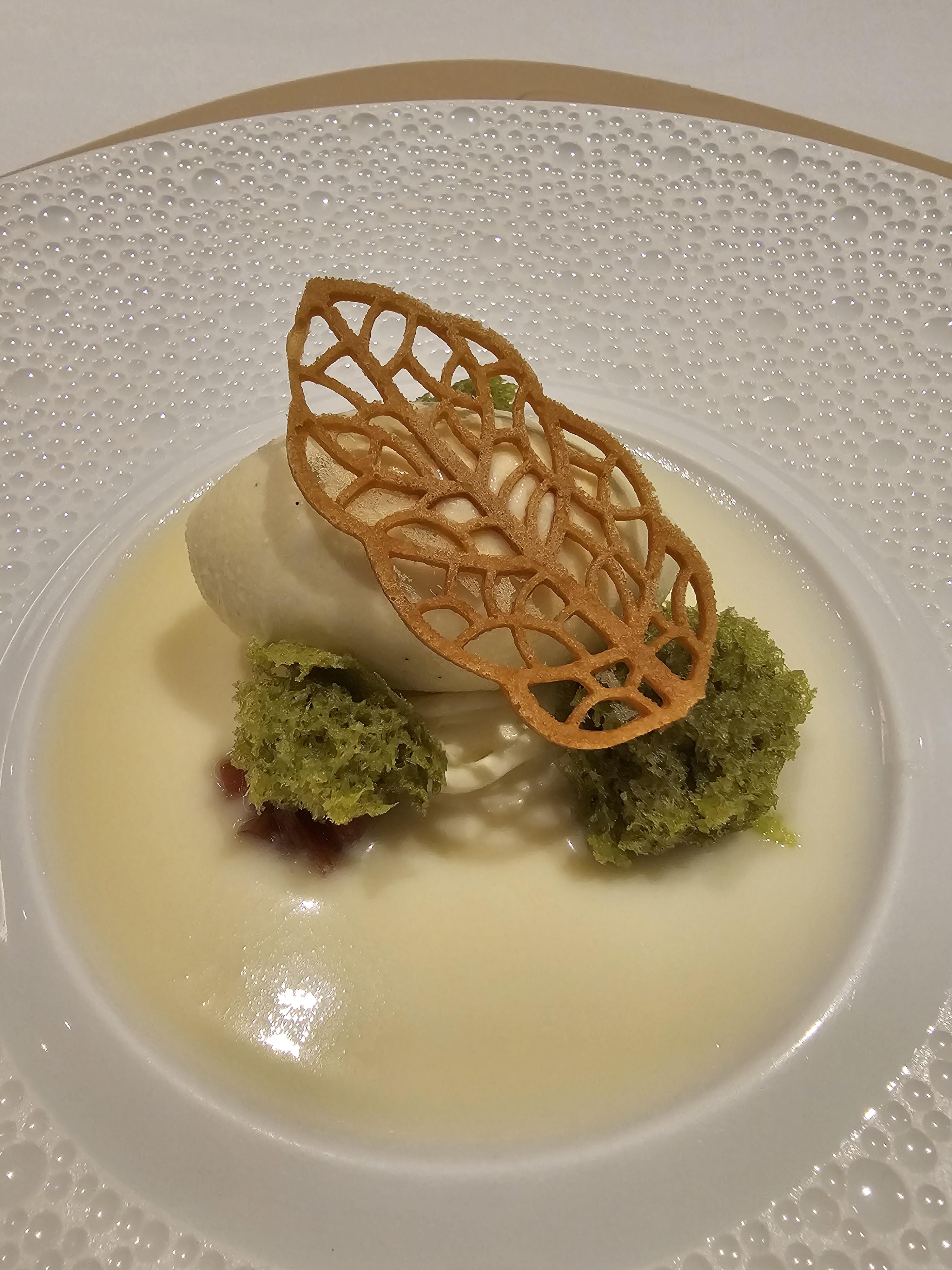 디저트: 프로즌 요거트 사과 코코넛 소스와 브리오슈 아이스크림