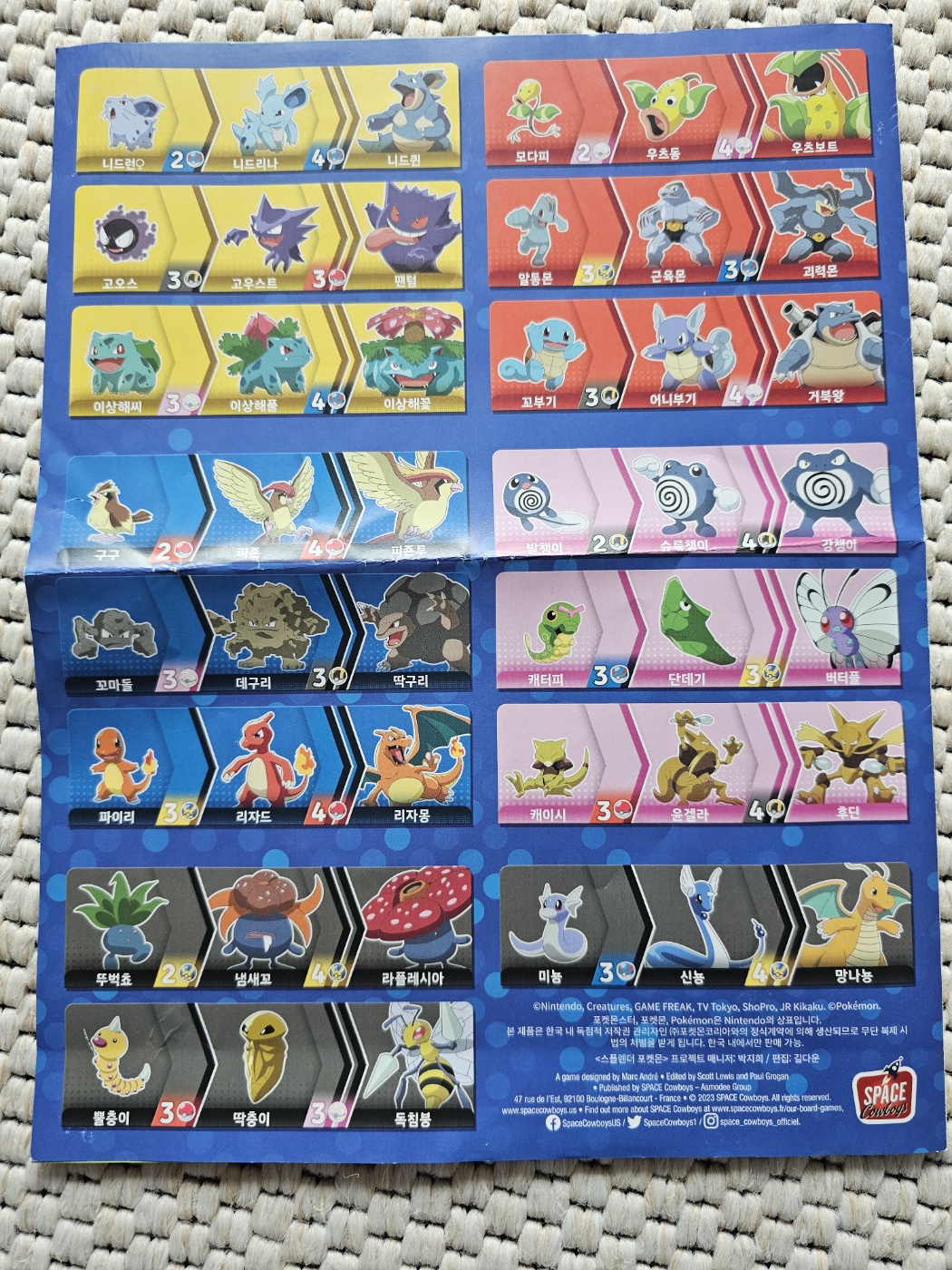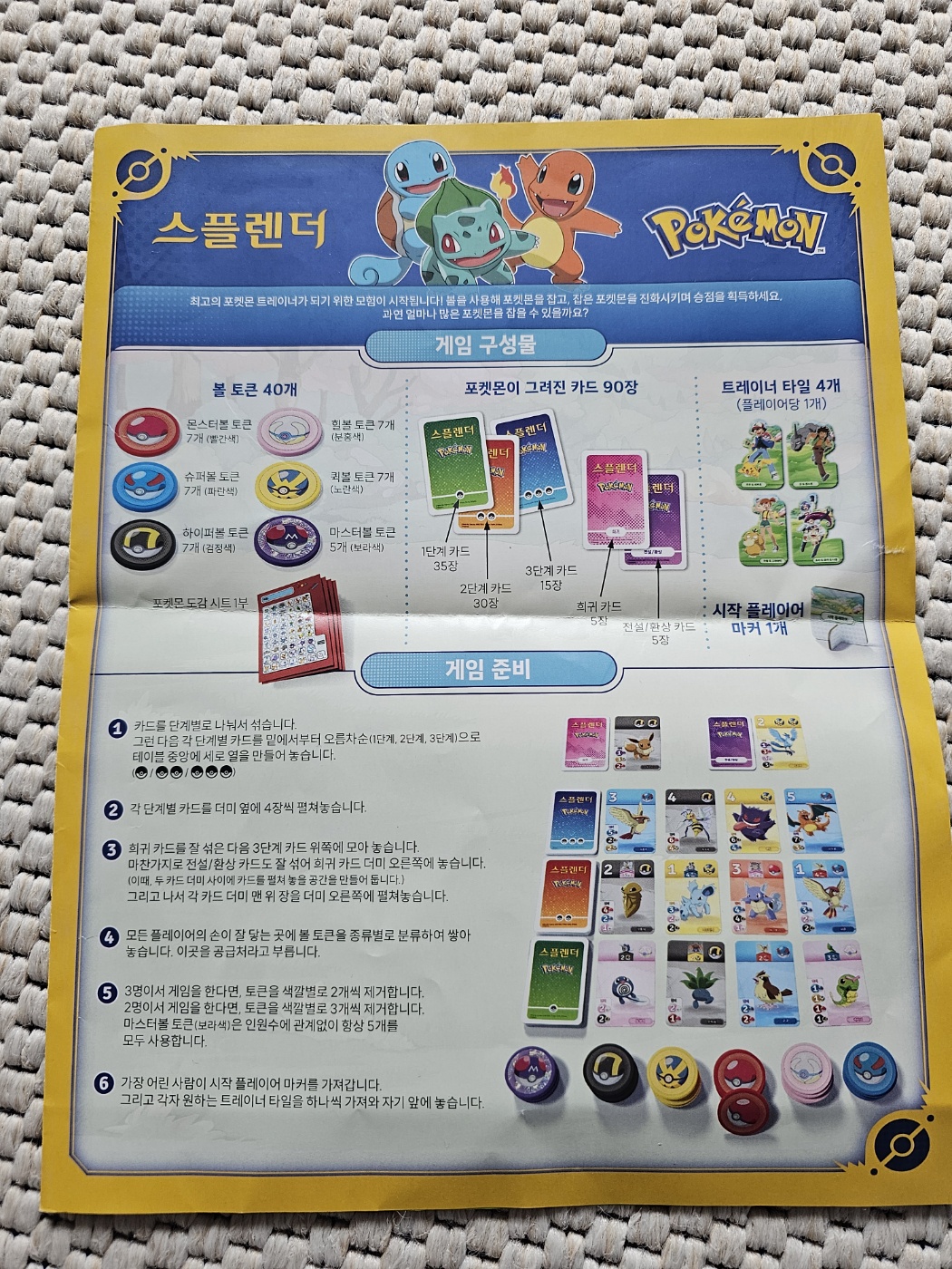 스플랜더 마블 버전을 처음 구입해서 재미있게 했었는데, 포켓몬 버전을 할인하길래 샀다. 사실 다 똑같은줄 알았는데 조금씩 룰이 다르다는걸 알았다. (아마도 원래 버전도 다를거 같은데)