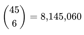 즉, 무작위로 6개를 골랐을 때 가능한 조합이 총 8,145,060가지라는 의미이다.