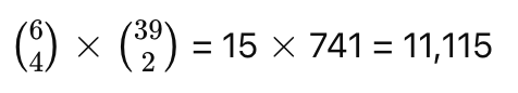 - 실제로는 6/45 중에서 5개만 맞추고(6가지 경우), 보너스를 1개 맞출 때(1가지 경우)만 해당