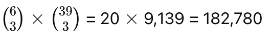- 확률: 182,780 / 8,145,060 (약 1/45, 약 2.24%)