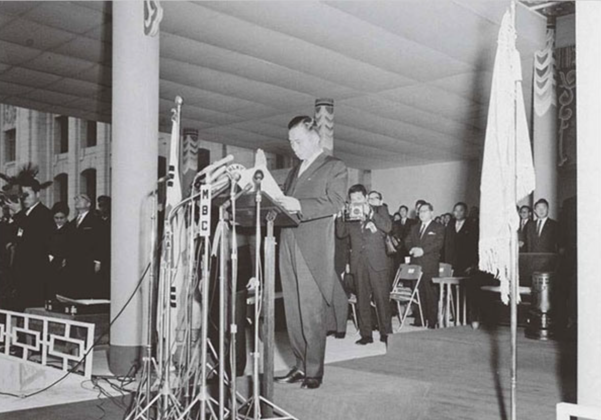 5.16 군사정변 이후, 대한민국은 군사정부의 통치를 받았다. 1963년, 박정희 대통령이 군복을 벗고 대통령 선거에 출마하여 당선되면서 제3공화국이 시작된다.