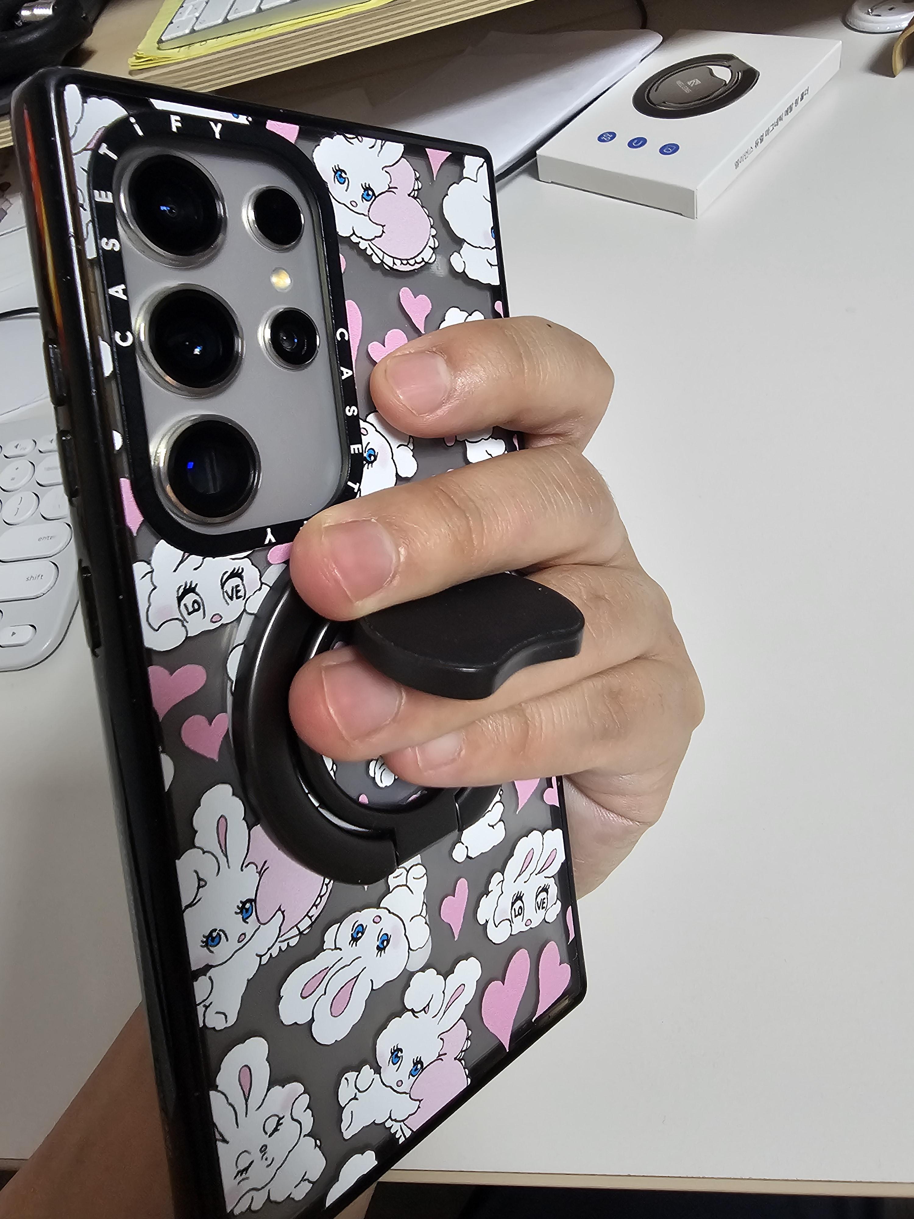 핸드폰으로 책을 많이 보는터라 세로로 볼수 있는 거치기능이 있는 링 홀더가 필요했다.