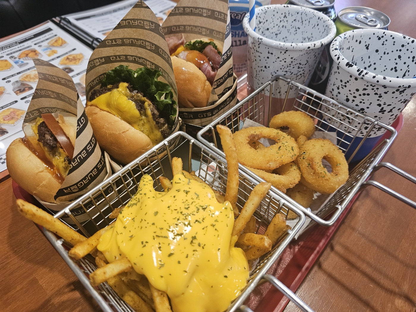 자리를 잡고 버거와 밀크쉐이크, 프렌치프라이 등을 주문했다.