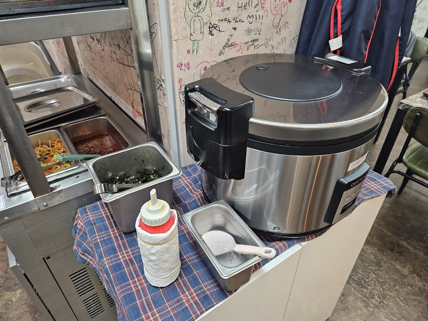 특이한 점이 하나 더 있는데, 바로 밥이 무한이다. 거기다가 그냥 밥을 칼국수에 말아서 먹는게 아닌, 비빔소스에 김가루, 야채, 참기름을 넣어 비빔밥으로도 먹을 수 있다는 점이다. 무료로 말이다.