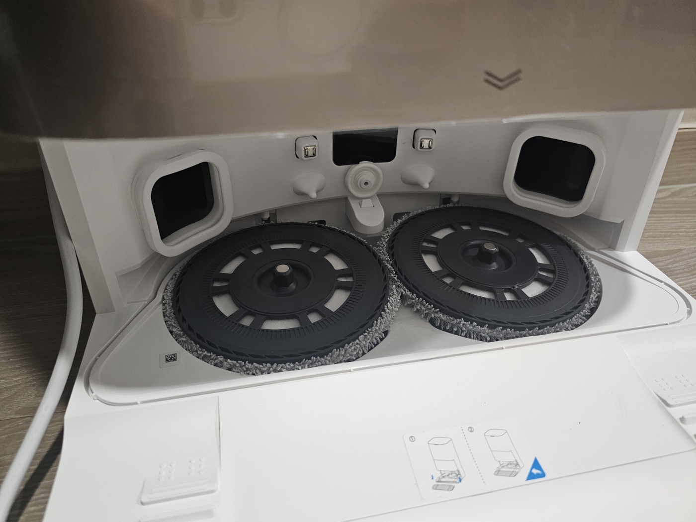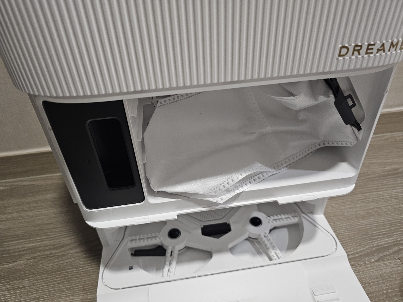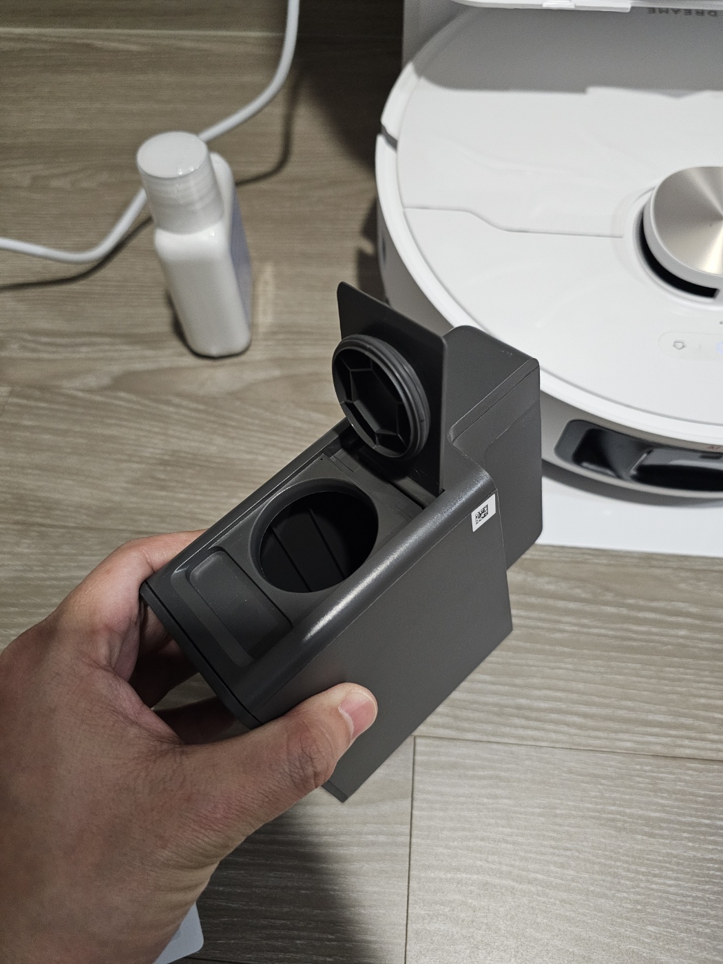 신기하게 로봇청소기가 옆으로 세워져 있었다. 도크가 로보락에 비해서 얇았으나 높이가 커서 저렇게 넣은듯 싶다.