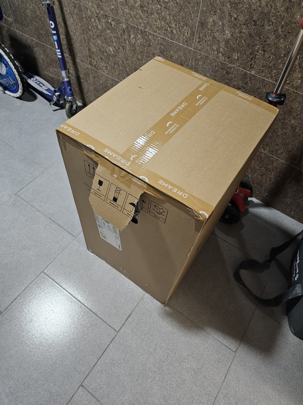 택배가 도착하였다. 첫 느낌은 좋지 않았다. 손잡이가 찢어져있었기 때문. 혹시 막 던졌을까? 하는 불안감에 박스를 뜯어보았다.